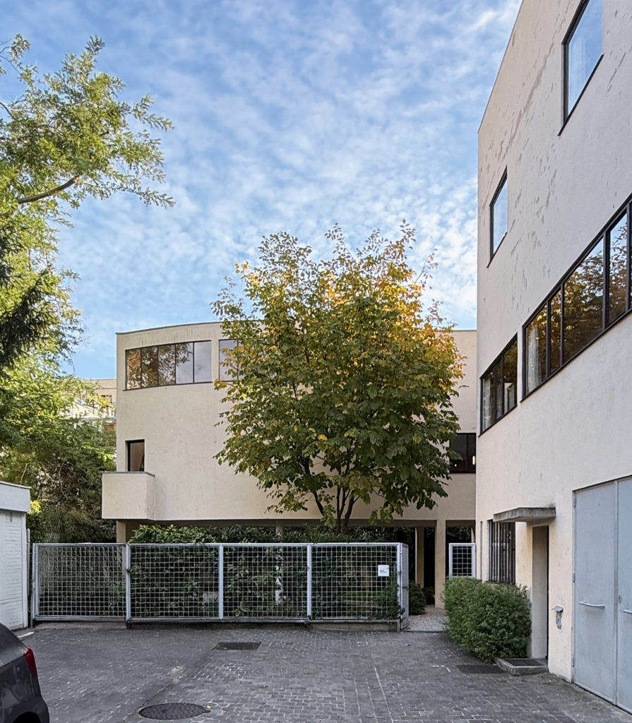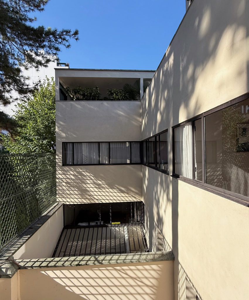 Et puis il y a cette deuxième promenade, plus intellectuelle, qui fait appel à une mémoire plus rationnelle, celle de la connaissance. Tout d’abord la présence partielle des cinq points pour une architecture nouvelle, qui ne sont pas encore actés, la théorie étant datée de 1926 et publiée en 19275. En 1925, ils ne sont pas appliqués à la lettre dans cette maison, ni dans sa production déjà importante cette année-là, bien que certains points y apparaissent clairement en tant que prémisses à ce qui peut être considéré comme la révolution théorique de la première moitié du vingtième siècle dans le domaine de l’architecture. Elle prendra forme à Stuttgart dans le cadre du Weissenhof-Siedlung avec les deux édifices que Le Corbusier érigera à cette occasion6. À Paris, le modeste pilotis qui surélève la galerie n’a pas encore la pureté de celui de la villa Savoye (1928-1931), le toit terrasse n’est pas encore un manifeste comme il le deviendra à Pessac pour la cité Frugès (1924-1927), les fenêtres en longueur apparaissent mais sont encore interrompues par de fines bandes de maçonnerie. La principale raison de cette non orthodoxie aux principes fondateurs qui verront le jour une année après son achèvement est l’absence du plan libre : celui qui n’est plus « esclave des murs portants », celui qui permet aux « étages [de ne plus se superposer] par cloisonnements »7.