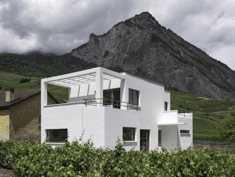 Pour conclure cette brève plongée historique marquant un siècle complet, il est intéressant d’établir quelques comparaisons chronologiques avec ce qui se passait dans nos régions lémaniques. Cette année 1925 fut celle de la naissance de deux des architectes genevois ayant façonné les villes et les campagnes de Suisse Romande, à savoir Jean-Marc Lamunière17 et François Maurice18. De cette période, la littérature recensant l’architecture domestique produite dans les années 1920 montre le grand écart entre cette villa et la production locale en terme de maisons individuelles. À Genève, seule la villa Ruf de Francis Quétant, achevée en 1929, soit quatre années après, introduit les « principes de l’architecture au début des années trente »19 avec sa structure en squelette métallique et ses fenêtres en longueur issue des cinq points. Sur le canton de Vaud ne sont créditées que la « petite maison » du même Le Corbusier à Corseaux (1923-1925)20 et, plus tard, en 1930, la villa Kenwin à la Tour-de-Peilz, des architectes berlinois Alexander Ferenczy et Hermann Henselmann qui tente de rivaliser avec le modèle parisien21. Enfin en Valais, il n’y a pas trace de constructions dignes d’intérêt avant la villa du pasteur Morand d’Alberto Sartoris à Saillon (1933-1936)22, mais dont le langage est en retrait par rapport à l’avant-gardisme qui inonde alors l’Europe.