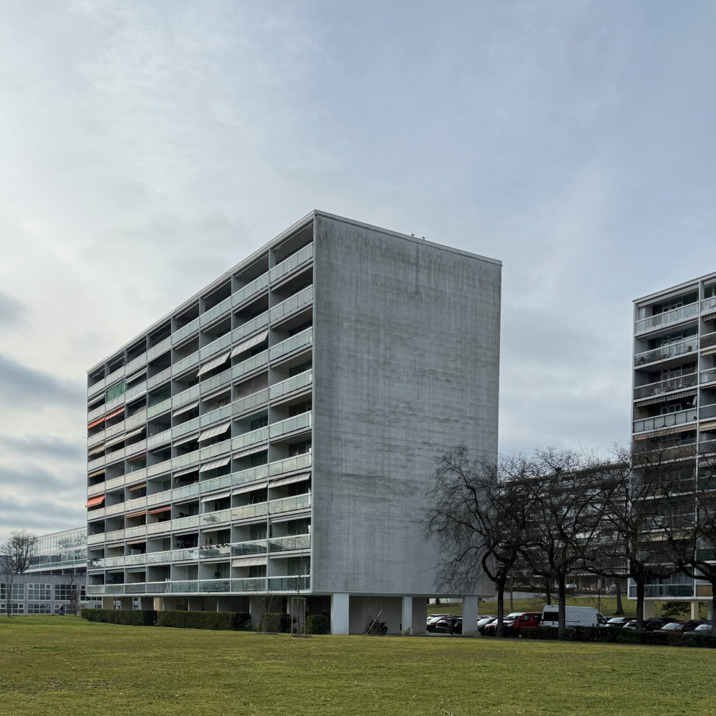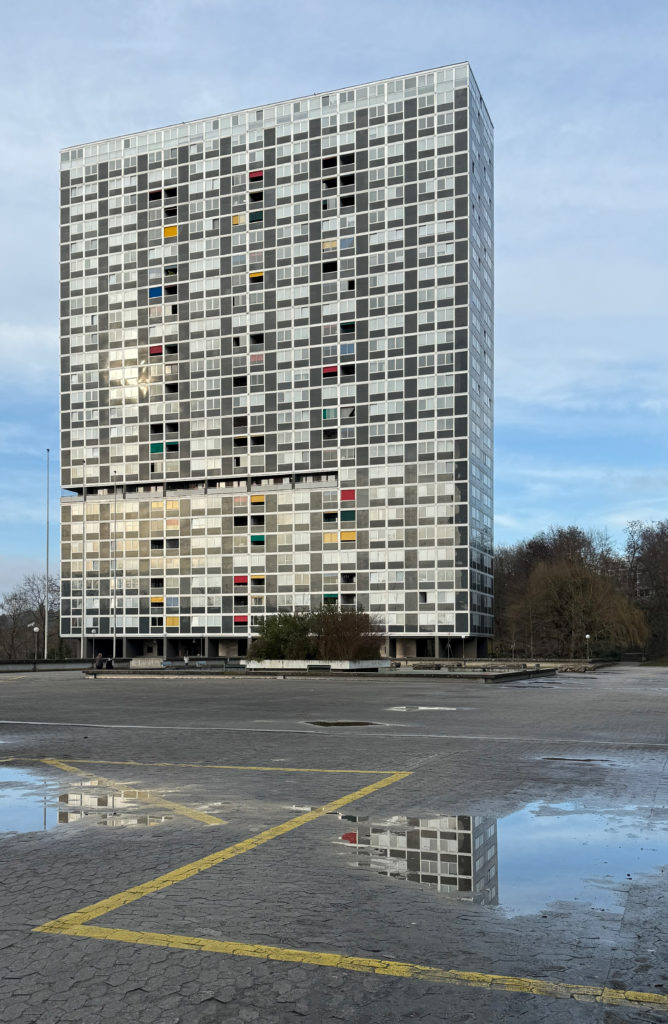 Alors que je les connais par cœur, que je les ai étudiés, que je les ai dessinés, que je les ai déjà maintes fois photographiés, malgré cet historique personnel, il a fallu que j’arpente le sol gorgé d’eau, pour en refaire le tour complet sur mes deux pieds, pour encore une fois les disséquer, essayer de comprendre ce qui amène en moi (en nous ?), cette attirance de l’ordre de l’émotion pure. En effet, dans ce deuxième quart du vingt-et-unième siècle qui s’avance plein d’incertitude et de regards critiques sur nos prédécesseurs en matière de construction durable, ces immeubles n’ont pas pour eux les atouts de la contemporanéité. « Inhumains », parce que lisses et sans âme, ils représentent pour une grande partie de la population l’antithèse de la ville traditionnelle ; construits en béton et en verre, ils ont été des gouffres de carbone et de véritables passoires énergétiques ; implantés loin des centres urbains du dix-neuvième siècle, ils impliquent une mobilité accrue ; conçus avec des rez-de-chaussée ouverts et sans aucunes activités partagées, ils excluent l’échange social ; enfin, leur implantation en barres et tours fait encore débat. En 1978, Rem Koohlaas, lorsqu’il défend le modèle de la congestion manhattanienne par rapport à la vision corbuséenne dont sont hérités les objets du présent article, tient ces propos pleins de reproches : « En faisant du gratte-ciel cartésien l’habitat universel (…), Le Corbusier a déjà été la victime crédule des contes de fées pragmatiques inventés par les constructeurs de Manhattan. Mais son projet véritable est encore plus destructeur : il vise à résoudre réellement les problèmes de la congestion. Abandonnés sur l’herbe, ses bagnards cartésiens sont alignés à 400 mètres les uns des autres (…). Un tel espacement interdit toute possibilité de rapport »1. Un constat somme toute assez implacable.